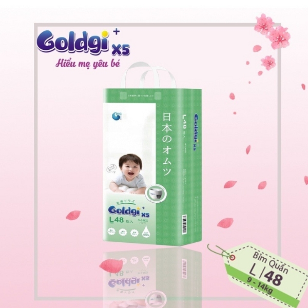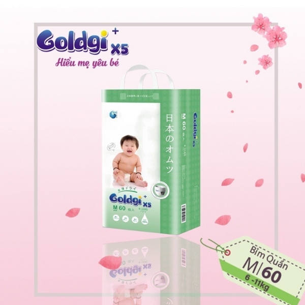 Bỉm Goldgi X5 3D chống tràn thấm hút khô thoáng | M60 L48 XL44 XXL32