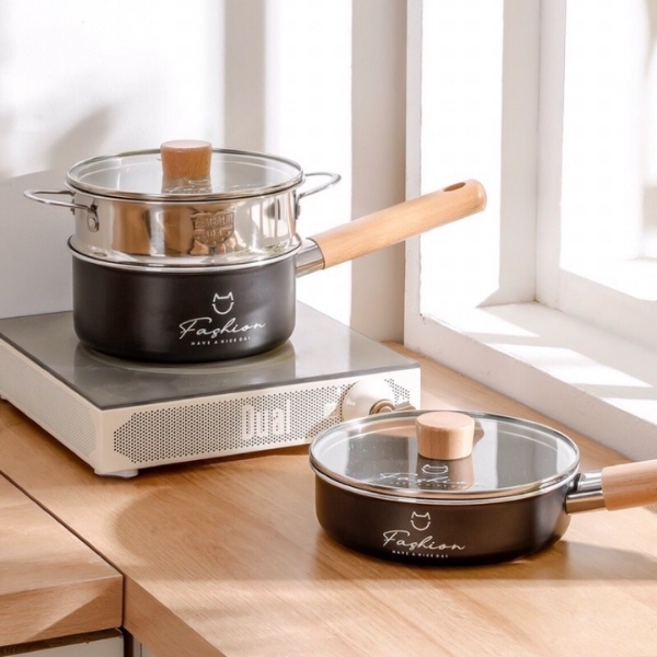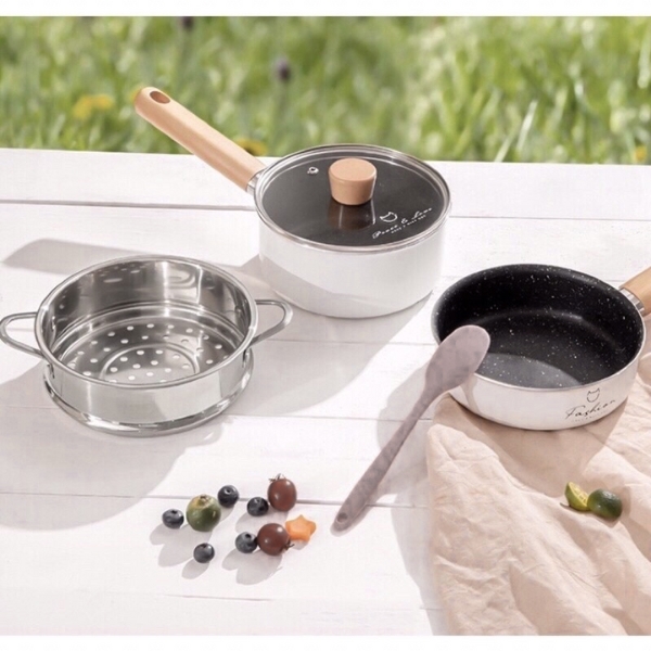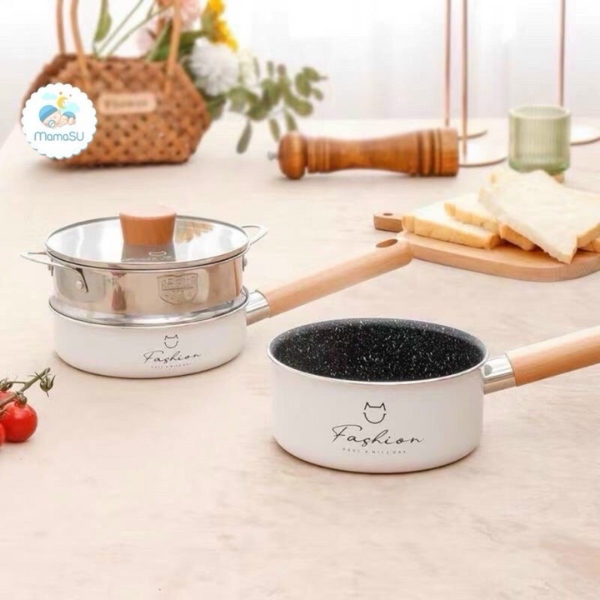 Bộ nồi chảo quánh cháo cho bé ăn dặm Fashion kèm xửng cao cấp